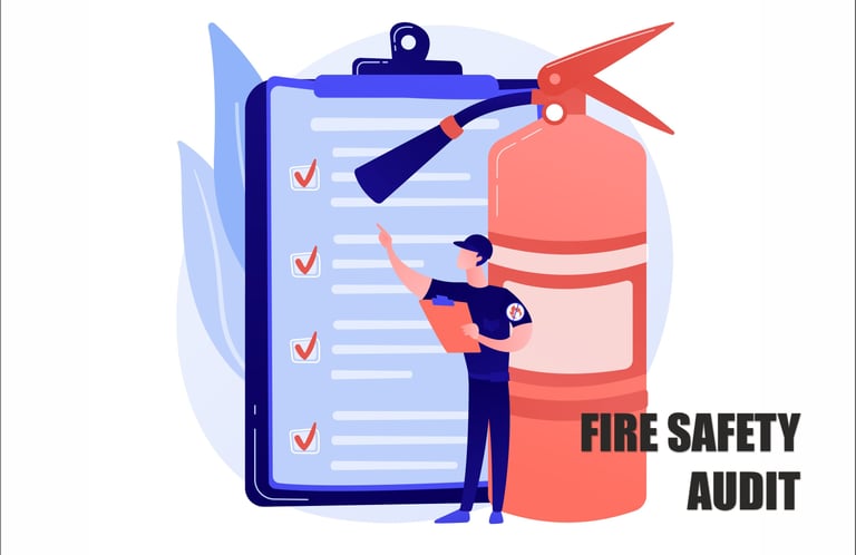A fire safety audit is a systematic assessment of a building or facility to evaluate its fire risks and ensure compliance with fire safety regulations. It involves inspecting fire prevention systems, emergency exits, fire alarms, extinguishers, and evacuation procedures. The audit helps identify potential hazards, assess the effectiveness of safety measures, and recommend improvements to minimize fire risks and enhance occupant safety. Regular audits are essential for maintaining a safe environment and meeting legal and insurance requirements.